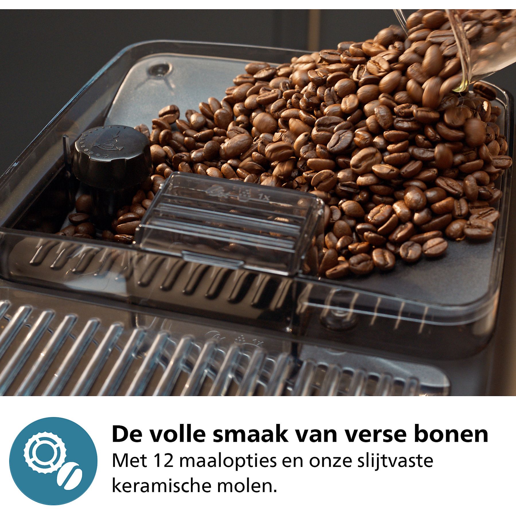 De keramische maalschijven zorgen voor een constante maling zonder de bonen te verbranden, waardoor je kop koffie altijd zijn volle smaak behoudt. Bovendien zorgt het AquaClean-waterfilter ervoor dat je het apparaat minder vaak hoeft te ontkalken en het onderhoud minimaal blijft.