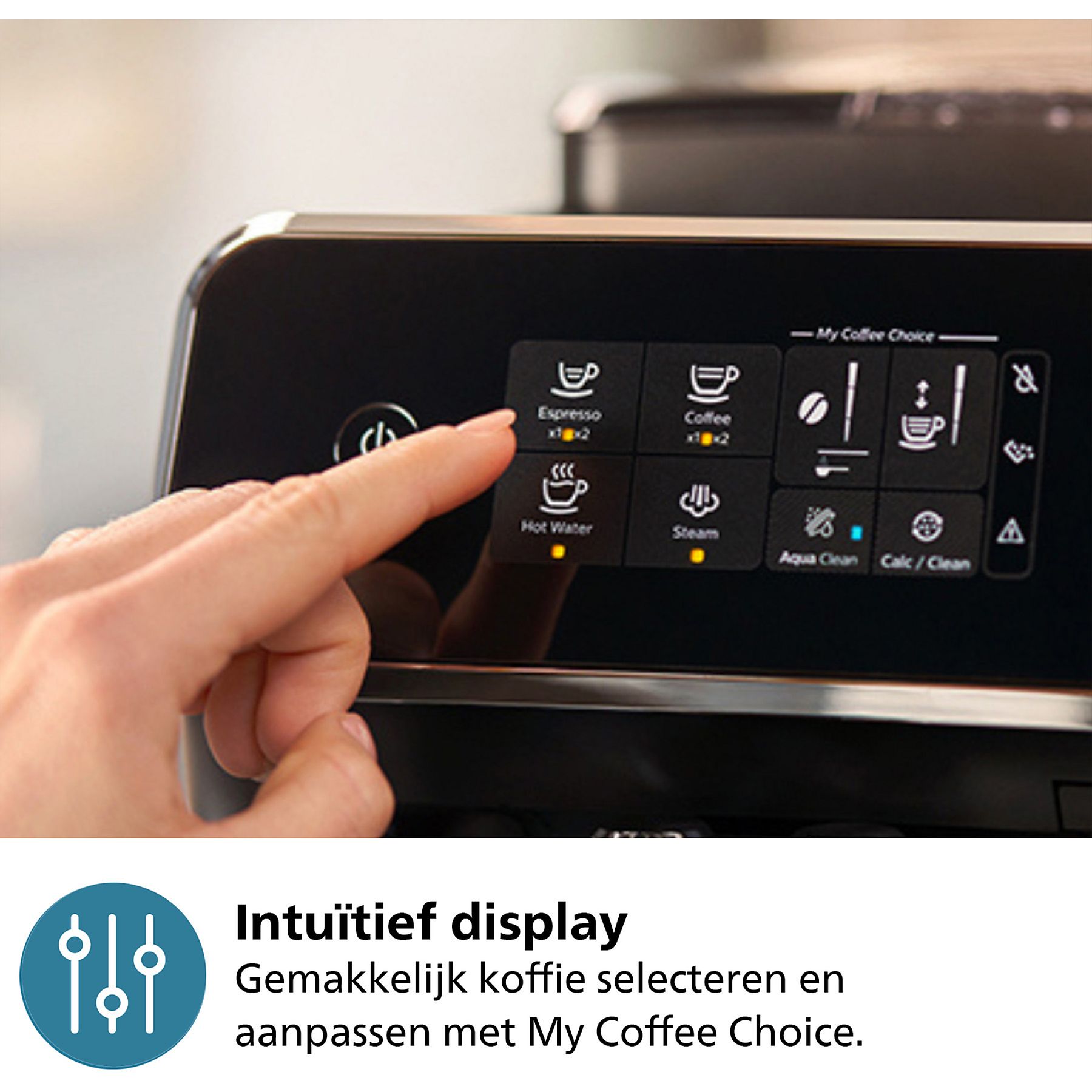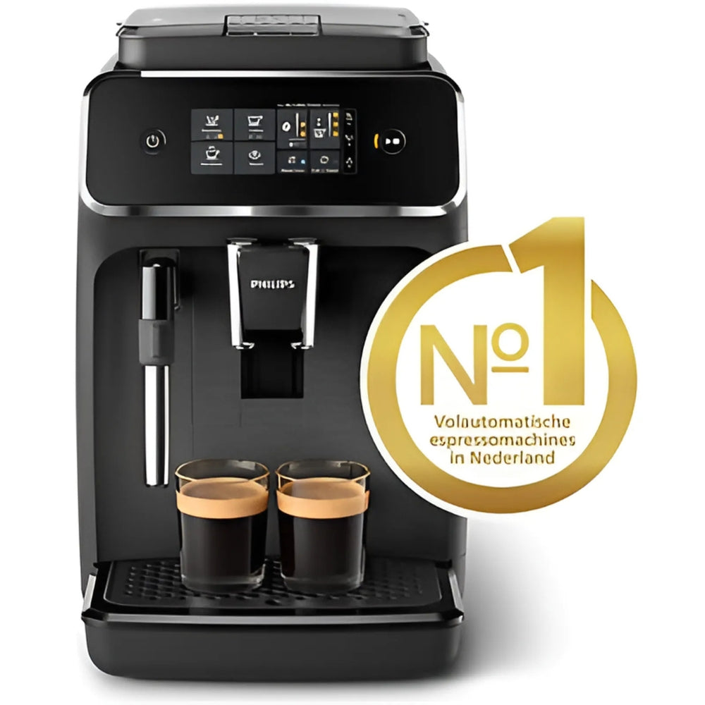 De Philips 2200 EP2224/10 maakt het eenvoudiger dan ooit om thuis te genieten van een heerlijke espresso of cappuccino. Met één druk op de knop zet je verse koffie van versgemalen bonen, precies zoals jij het wilt. Dankzij het heldere touchscreen is de bediening intuïtief en snel, en met het klassieke melkopschuimpijpje maak je moeiteloos een romige cappuccino.